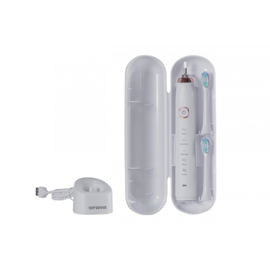 Orava Stomafresh sonický zubní kartáček, 5 režimů, cestovní pouzdro, časovač, bílá