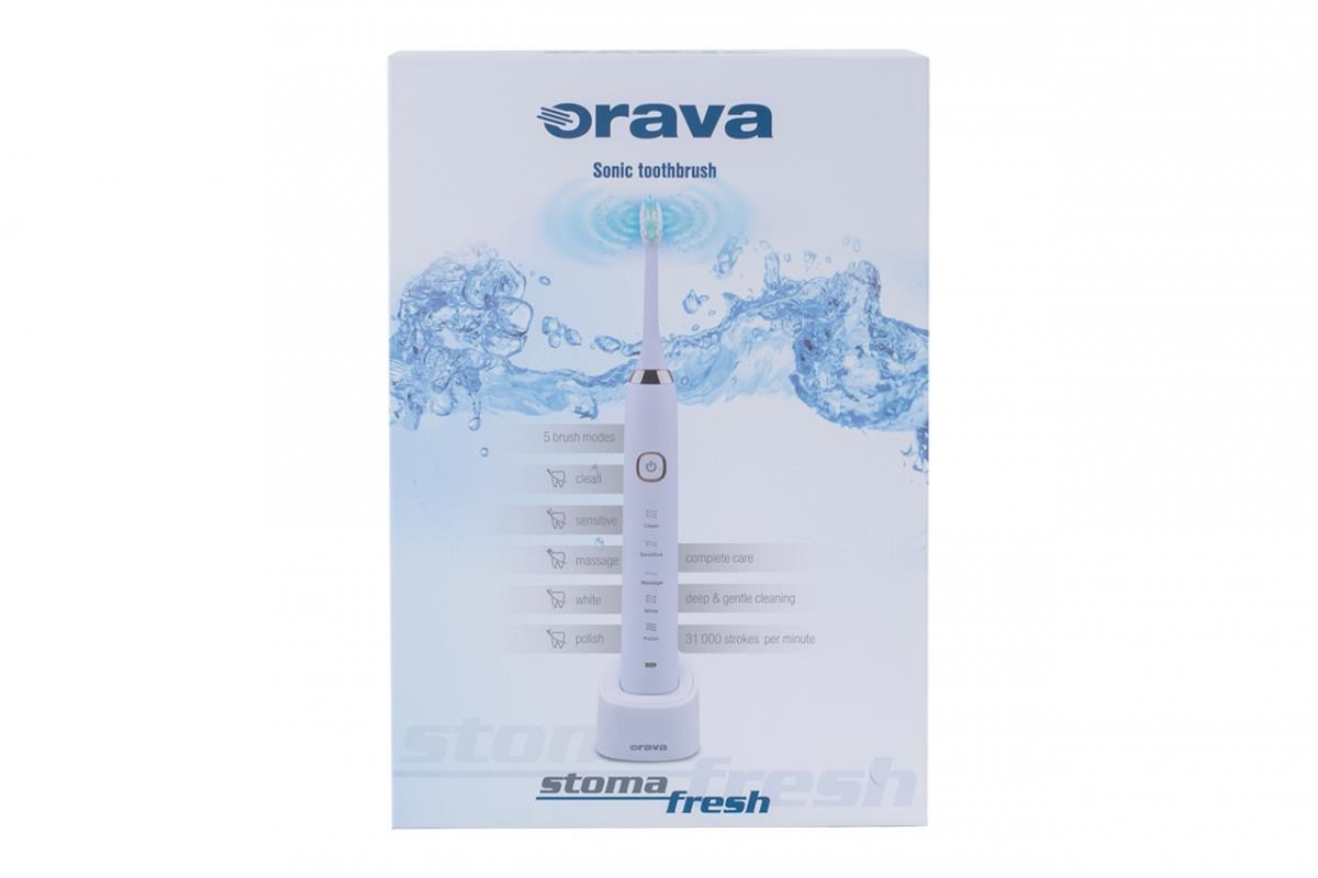 Orava Stomafresh sonický zubní kartáček, 5 režimů, cestovní pouzdro, časovač, bílá
