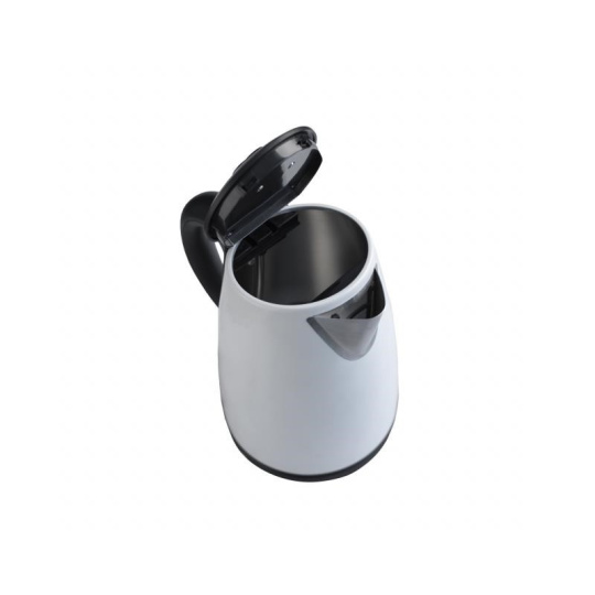 Elektrická varná konvice - bílá. Varná nádoba z ušlechtilé nerezové oceli. Objem 1,7l. Otevírání vrchního víka konvice stisknutím tlačítka. Varná nádoba na odnímatelném 360° otočném podstavci. Topné těleso překryté plotnou s ušlechtilé oceli. Stupnice hladiny vody. Ochrana před ohřevem bez vody. Auto vypnutí. Vyjímatelné filtrační sítko na vodu. Síťová šňůra odkladatelná v podstavci. Napájení 230V 50 Hz, 2000 W.