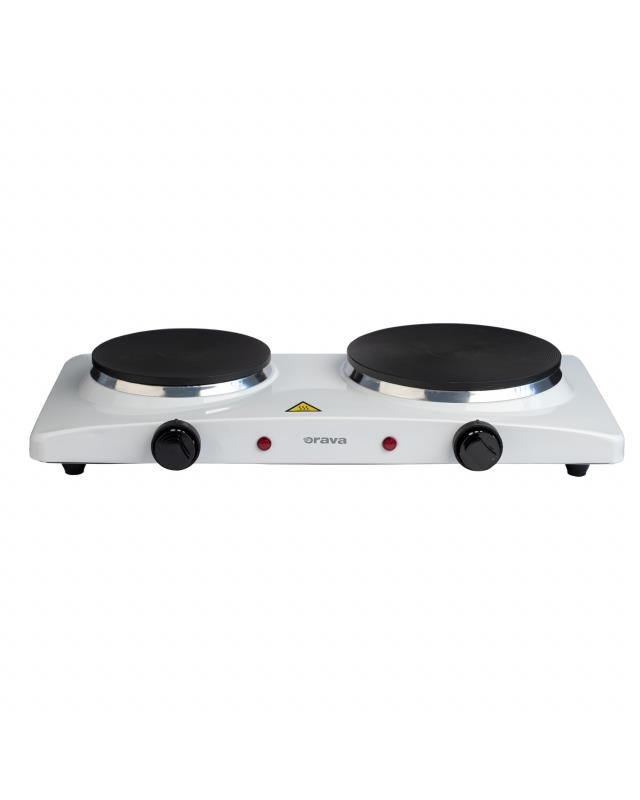Orava VP-91 W elektrický vařič, 1500 W, regulace teploty, 2 plotýnky, manuální ovládání, průměr 185 a 155 mm, bílá