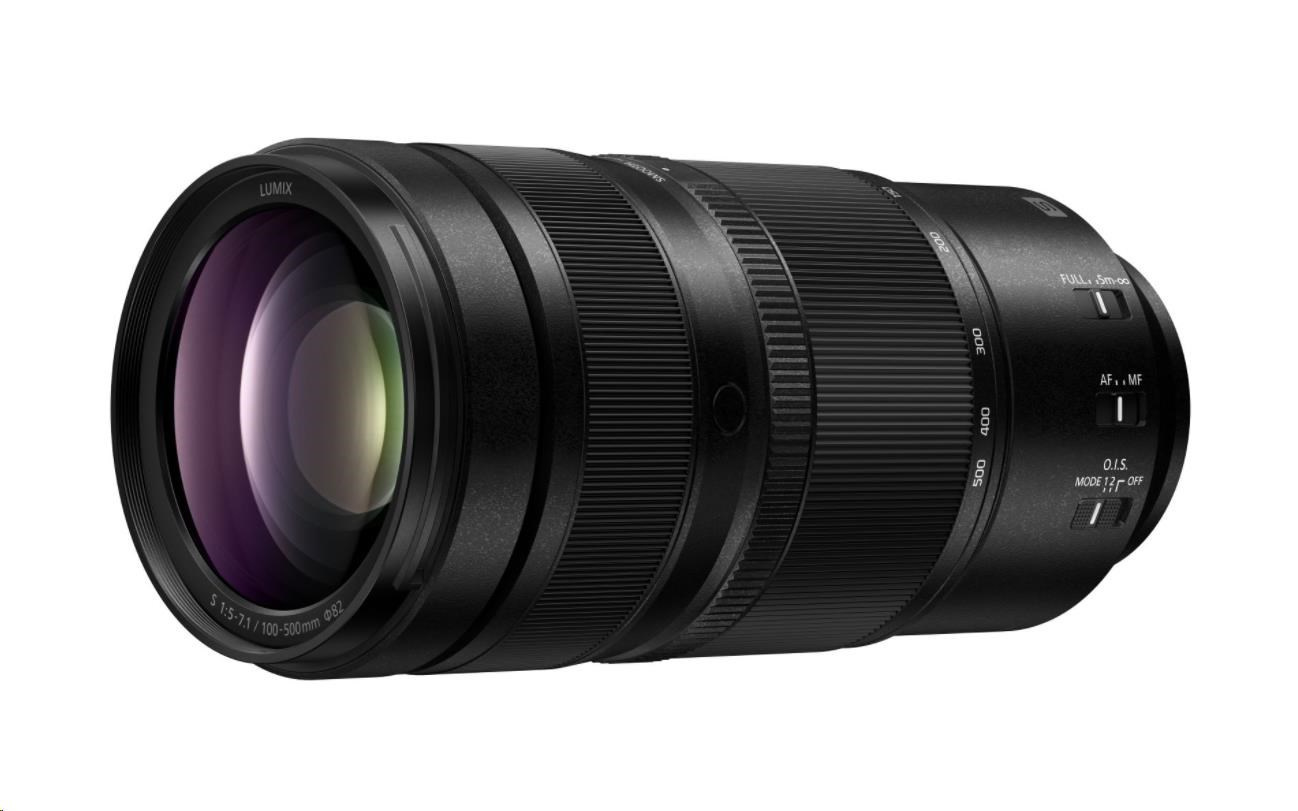 Ultra kompaktní teleobjektiv Lumix S pro foto a video v rozlišení 8K, ohnisková vzdálenost 100–500 mm s možností prodloužení až na 1000 mm (s 1.4×/2.0× telekonvertorem), optická stabilizace obrazu O.I.S.