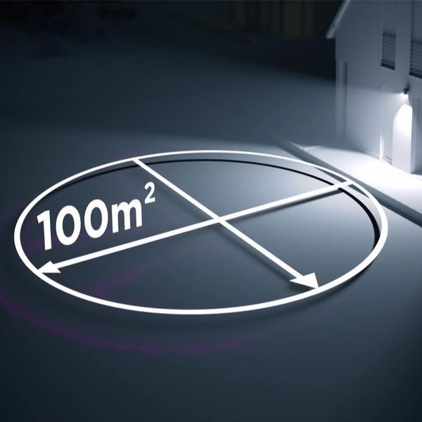 74 vysoce kvalitních LED diod současně osvětluje až 100 m2 vašeho domova téměř stejně jasně jako ve dne s obrovskou svítivostí.
