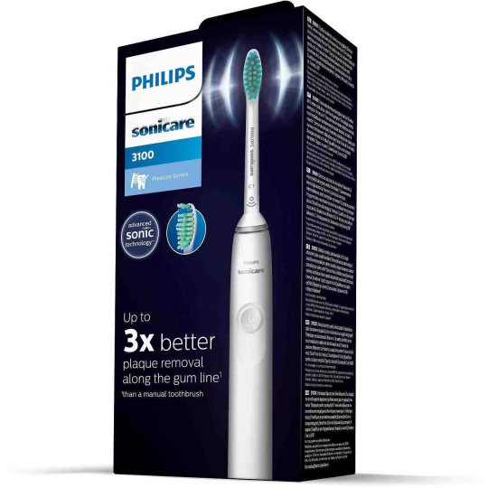 Poznejte šetrnou péči osvědčené, efektivní a komfortní sonické technologie! Je klinicky prokázáno, že v porovnání s tradičním čištěním zubů manuálním kartáčkem dokáže Philips Sonicare 3100 odstranit až 3× více zubního plaku. Je také vybavený citlivým tlakovým senzorem, který vás dokáže jemnou pulzací upozornit v okamžiku, kdy na zuby a dásně příliš tlačíte. Příliš velký tlak totiž dokáže způsobit celou řadu zdravotních problémů a přitom není vůbec snadné ho odhalit. Kartáček tak přispívá k lepšímu stavu dásní a celkovému zdraví vaší ústní dutiny. Přístroj za vás hlídá i optimální dobu čištění zubů a to, zda každé části úst věnujete stejnou péči. Pokud je pro vás čištění zubů sonickou technologií nové, oceníte režim Easy-Start, který postupně navyšuje intenzitu čištění tak, abyste si lépe zvykli. Technologie BrushSync monitoruje stav opotřebení kartáčkové hlavice a dá vám signál v okamžiku, kdy je třeba ji vyměnit za novou. Kartáček se nabíjí prostřednictvím USB kabelu.