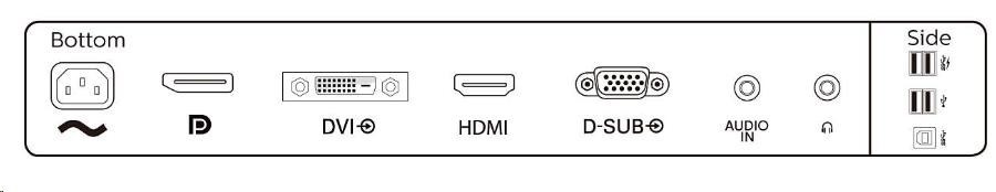 - Vstup signálu: VGA (analogový), DVI-D (digitální, HDCP), DisplayPort 1.2, HDMI 1.4
