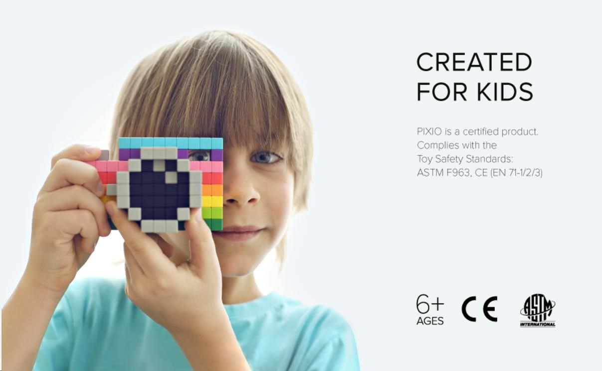 PIXIO je certifikovaný produkt v souladu s bezpečnostními normami CE a ASTM pro hračky. Může být