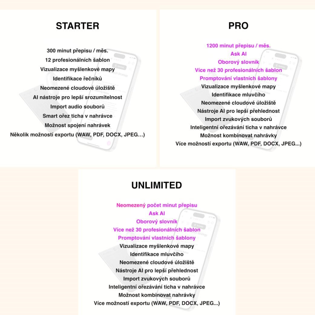 - Váš 3v1 asistent: Záznam, přepis, souhrn. 300 minut měsíčně zdarma.