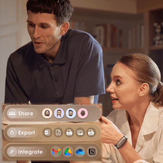 Plaud Note Pin zajišťuje bezproblémovou integraci napříč různými platformami, jako jsou Google, Microsoft, Notion a další. Tato vlastnost umožňuje snadné sdílení a synchronizaci vašich záznamů a poznámek, což zvyšuje efektivitu vaší práce. Díky maximální flexibilitě můžete mít všechny své důležité informace na dosah ruky a přistupovat k nim odkudkoliv, kdykoliv.