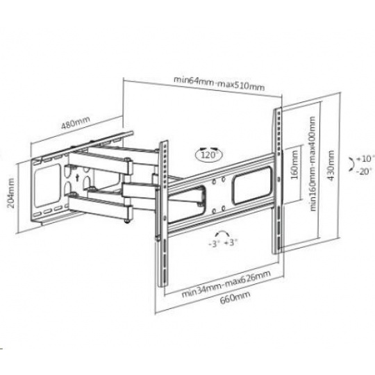 Poctivý nástěnný polohovací držák Tv Fiber Mounts Prominent Držák na Tv 37-70", otočný, sklopný, výsuvný, bytelná konstrukce, nosnost 50kg Nástěnný držák s bytelnou konstrukcí pro spolehlivé a bezpečné zavěšení televizorů s úhlopříčkou 37-70". Televizor lze po zavěšení na tento držák vysouvat od zdi, otáčet do stran, naklápět a v případě nepřesné instalace korigovat rovinu obrazovky. Držák Fiber Mounts Prominent unese televizory s hmotností až 50kg a podporuje VESA standardy 200x200 až 600x400. Barevné provedení černé, záruka 5 let. Technické údaje: nosnost 50kg podpora VESA standardů pro zavěšení Tv 200x200 až 600x400 ideální na televizory s úhlopříčkou 37" až 70" výsuvný, nastavení vzdálenosti Tv od zdi 64mm až 510mm otáčení televizoru do stran +/- 60° možnost velkého náklonu televize dolů až 20°, nahoru až 10° možnost korekce roviny obrazovky kvalitní, robustní konstrukce bezpečné zavěšení televizorů barevné provedení černé záruka 5 let Držák Fiber Mounts Prominent podporuje VESA standardy: VESA 200x200 VESA 300x200 a 200x300 VESA 300x300 VESA 400x200 a 200x400 VESA 400x300 a 300x400 VESA 400x400 VESA 600x400.