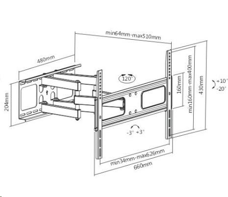 Poctivý nástěnný polohovací držák Tv Fiber Mounts Prominent Držák na Tv 37-70", otočný, sklopný, výsuvný, bytelná konstrukce, nosnost 50kg Nástěnný držák s bytelnou konstrukcí pro spolehlivé a bezpečné zavěšení televizorů s úhlopříčkou 37-70". Televizor lze po zavěšení na tento držák vysouvat od zdi, otáčet do stran, naklápět a v případě nepřesné instalace korigovat rovinu obrazovky. Držák Fiber Mounts Prominent unese televizory s hmotností až 50kg a podporuje VESA standardy 200x200 až 600x400. Barevné provedení černé, záruka 5 let. Technické údaje: nosnost 50kg podpora VESA standardů pro zavěšení Tv 200x200 až 600x400 ideální na televizory s úhlopříčkou 37" až 70" výsuvný, nastavení vzdálenosti Tv od zdi 64mm až 510mm otáčení televizoru do stran +/- 60° možnost velkého náklonu televize dolů až 20°, nahoru až 10° možnost korekce roviny obrazovky kvalitní, robustní konstrukce bezpečné zavěšení televizorů barevné provedení černé záruka 5 let Držák Fiber Mounts Prominent podporuje VESA standardy: VESA 200x200 VESA 300x200 a 200x300 VESA 300x300 VESA 400x200 a 200x400 VESA 400x300 a 300x400 VESA 400x400 VESA 600x400.