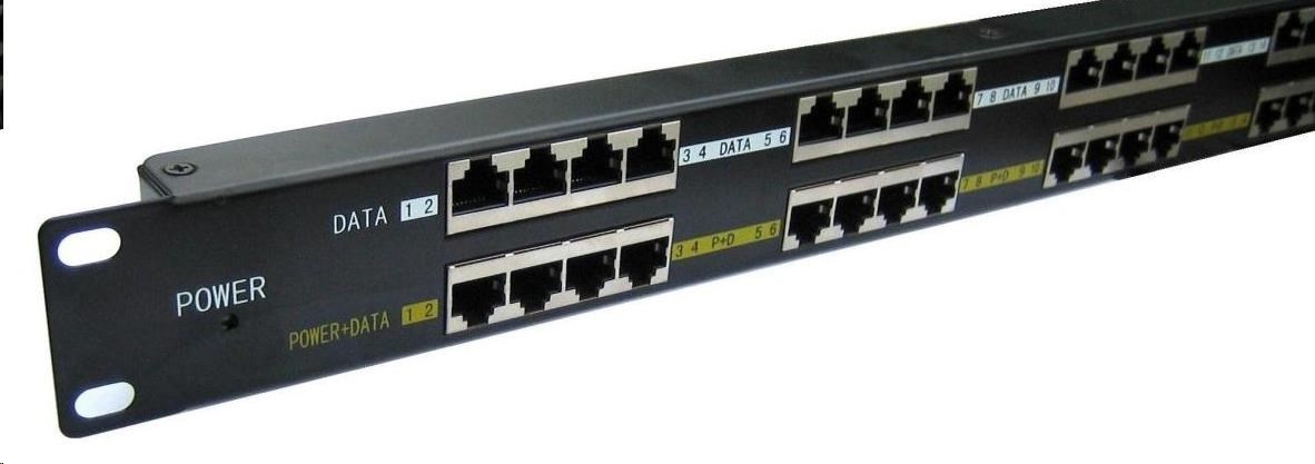 Přidáním tohoto průchozího panelu do rozvaděče získáte napájecí centrum, které jednoduchým způsobem zapojíte mezi stávající switch a patchpanel, který již vede k napájenému zařízení (IP kamera, IP telefon, bezdrátové prvky, apod.)