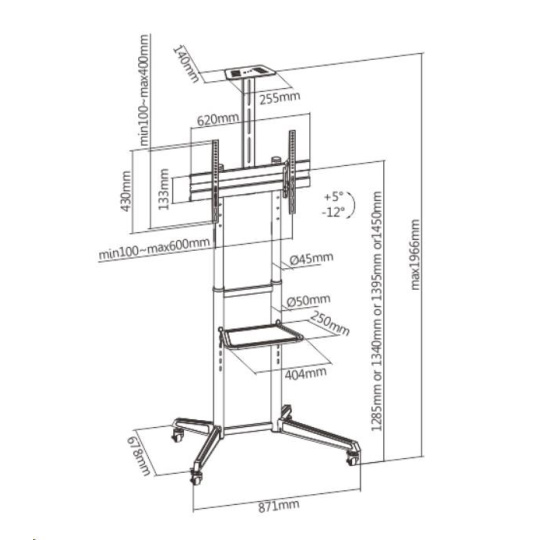 - Rozsah výškového nastavení1285, 1340, 1395 nebo 1450mm