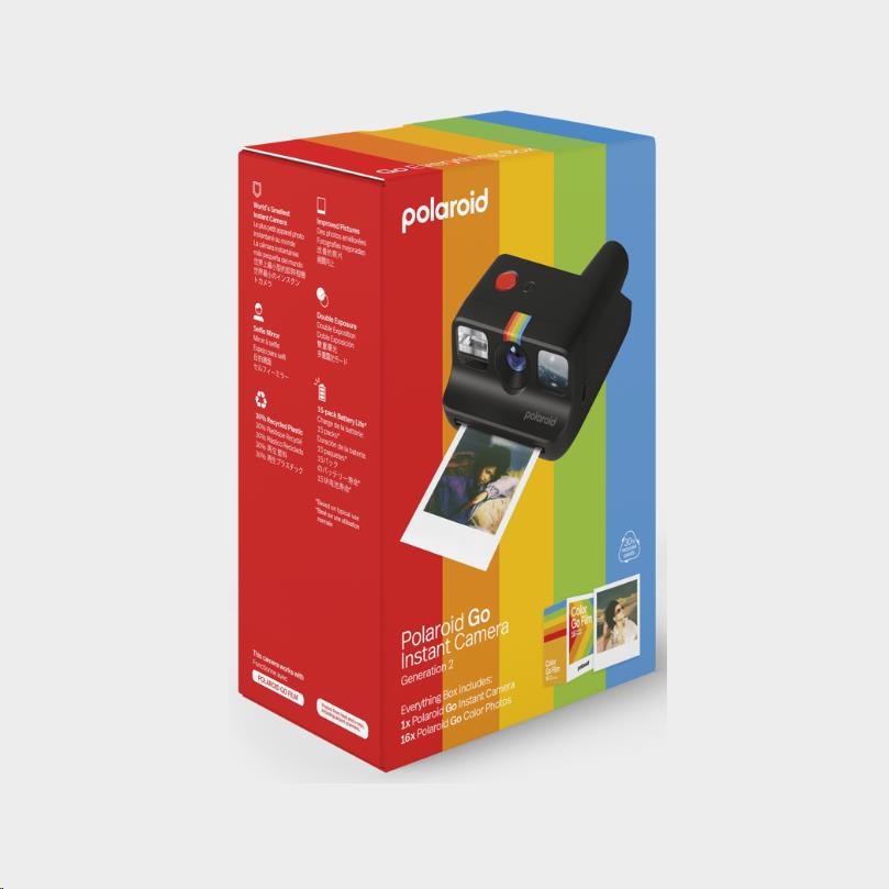 Je opravdu malý (nejmenší fotoaparát na světě), ale má velký tvůrčí potenciál, zrcátko pro selfie, samospoušť, dvojitou expozici a lze jej spárovat s vlastními malinkými barevnými filtry. To vše v klasickém designu a nyní vyrobeném z 30 % z recyklovaných materiálů. Součástí balení je dvojbalení filmů Polaroid Color Go pro 16 barevných instantních fotografií s bílými rámečky.