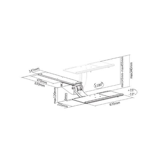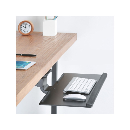 Polička na klávesnici Fiber Mounts M7C95 Plně polohovatelná přídavná polička na klávesnici, rozměry 670x255mm Profesionální plně polohovatelná stolní přídavná polička na klávesnici a myš, která poskytuje skutečné ergonomické řešení pro Vaši nejpohodlnější práci. Nastavení ve všech polohách s aretací. Pokud požadujete to nejlepší a záleží Vám na zdravém pracovním stylu, tuto poličku si zamilujete. Profesionální stolní polička na klávesnici, plně polohovatelná: výsuvná, otočná, sklopná, výškové nastavení 34cm, aretace polohy - Fiber Mounts M7C95 Technické údaje: nosnost 2kg výsuvná 470mm výškové polohování 340mm otáčení +/- 180° rozsah naklápění +15 / -13° rozměry police 670 x 255 snadné schování police s klávesnicí pod stolovou deskou aretace polohy nejvyšší kvalita snadná instalace a ovladatelnost zvýšení komfortu a pracovního výkonu barevné provedení černé záruka 3 roky Precizní velmi snadné polohování poličky na klávesnici Fiber Mounts M7C95 Ušetřete na svém stole spoustu místa - dejte klávesnici a myš na tuto výsuvnou polici a kdykoliv ji můžete uschovat pod slolovou deskou. Police je plně nastavitelná a poskytuje při práci vysoký komfort..