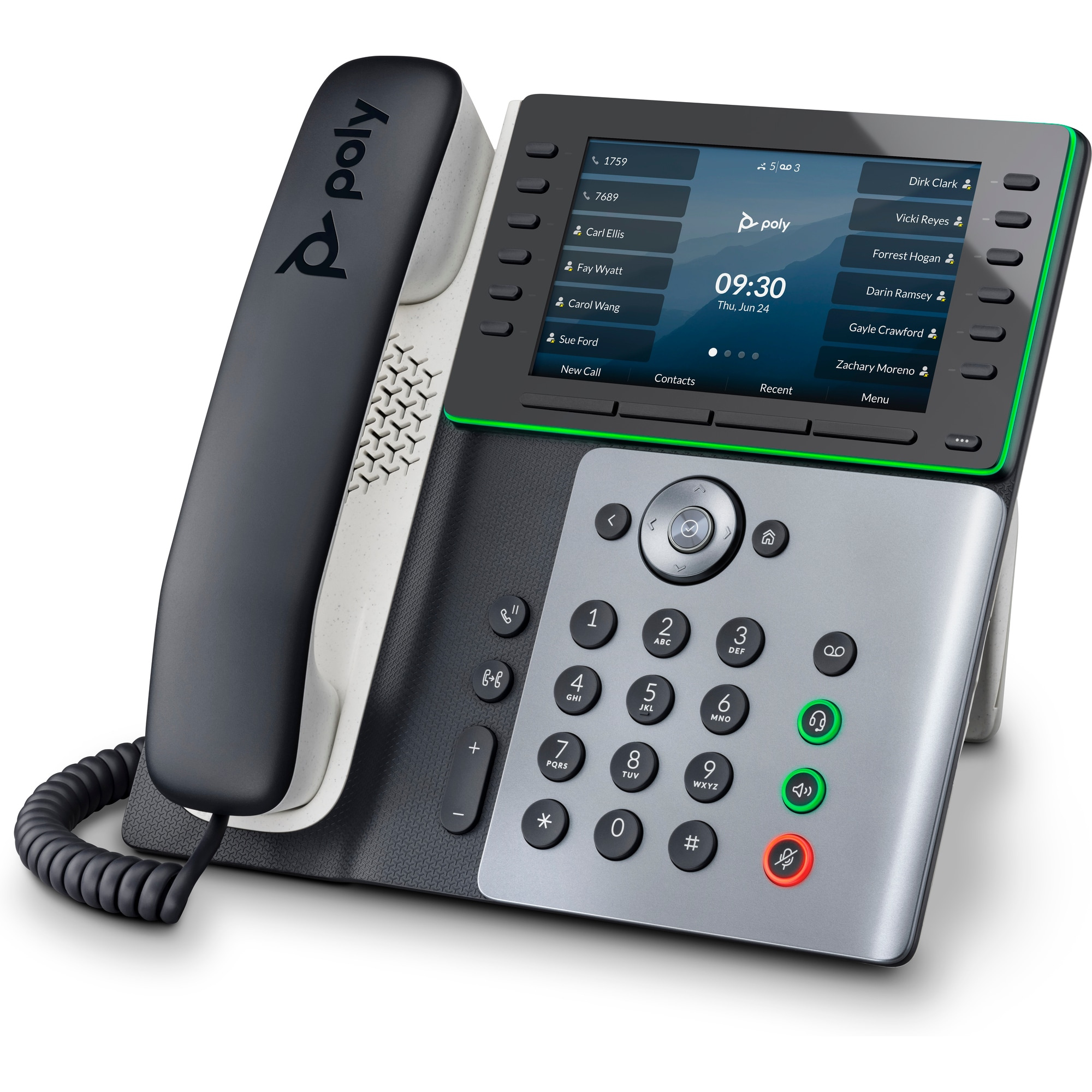 | Audio | Poly HD Voice; Technologie Poly Acoustic Clarity zajišťuje plně duplexní hovory a potlačuje akustickou ozvěnu i okolní šum; Technologie Poly Acoustic Fence potlačuje okolní hluk při použití sluchátka nebo kabelové náhlavní soupravy; Technologie Poly NoiseBlockAI odstraňuje většinu okolního hluku při používání konferenčního reproduktoru; Aplikace Poly Computer Audio Connector nainstalovaná v počítači (pouze Windows) umožňuje vybrat telefon pro zvukový vstup a výstup počítače a použít s počítačovými aplikacemi sluchátka, volitelné náhlavní soupravy a handsfree hlasitého odposlechu; Design s vylepšenými basy; Širokopásmový zvuk TIA-920, v souladu s typem 1 (plně duplexní IEEE 1329); Individuální nastavení hlasitosti s vizuální zpětnou vazbou pro každou zvukovou cestu; Detekce hlasové aktivity; Komfortní tvorba hluku; Generování tónů DTMF (RFC 2833 a v pásmu); Přenos zvukových paketů s nízkým zpožděním; Adaptivní paměti pro vyrovnání zpoždění |