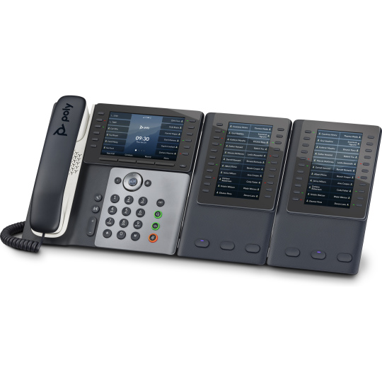 AudioPoly HD Voice; Technologie Poly Acoustic Clarity zajišťuje plně duplexní hovory a potlačuje akustickou ozvěnu i okolní šum; Technologie Poly Acoustic Fence potlačuje okolní hluk při použití sluchátka nebo kabelové náhlavní soupravy; Technologie Poly NoiseBlockAI odstraňuje většinu okolního hluku při používání konferenčního reproduktoru; Aplikace Poly Computer Audio Connector nainstalovaná v počítači (pouze Windows) umožňuje vybrat telefon pro zvukový vstup a výstup počítače a použít s počítačovými aplikacemi sluchátka, volitelné náhlavní soupravy a handsfree hlasitého odposlechu; Design s vylepšenými basy; Širokopásmový zvuk TIA-920, v souladu s typem 1 (plně duplexní IEEE 1329); Individuální nastavení hlasitosti s vizuální zpětnou vazbou pro každou zvukovou cestu; Detekce hlasové aktivity; Komfortní tvorba hluku; Generování tónů DTMF (RFC 2833 a v pásmu); Přenos zvukových paketů s nízkým zpožděním; Adaptivní paměti pro vyrovnání zpoždění