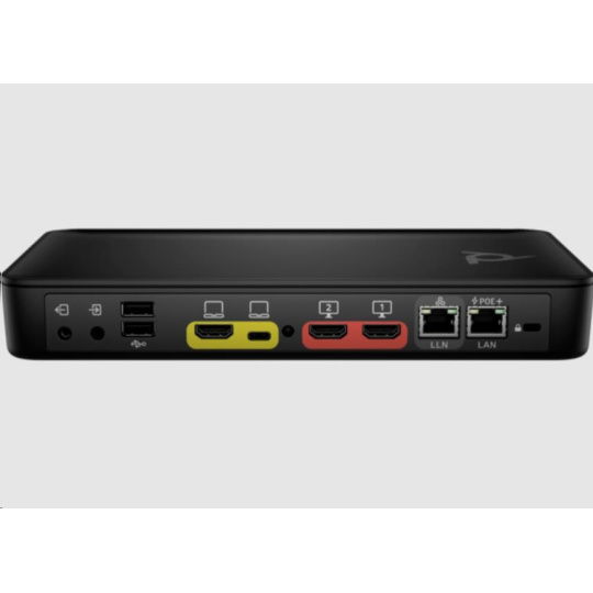 | Porty | 2× USB Type-A s přenosovou rychlostí 5 Gb/s; 1× vstup HDMI 2.0; 1× linkový vstup; 1× linkový výstup; 2× výstup HDMI 2.0 (video); 1× PoE+ 802.3at třídy 4 LAN RJ-45; 1× LLN RJ-45; 1× USB Type-C® s přenosovou rychlostí 5 Gb/s (s rozhraním DisplayPort™ Alt Mode pro vstup videa, 2 pásma 4K při 30 Hz) |