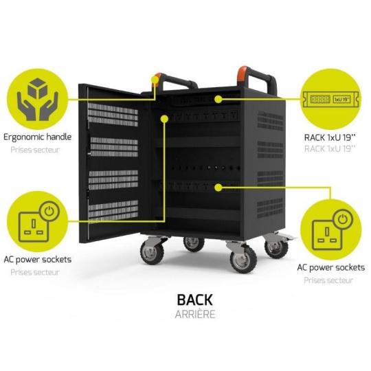 - Kapacita: až 20 notebooků do velikosti 15,6 '' a 1x RACK U19"