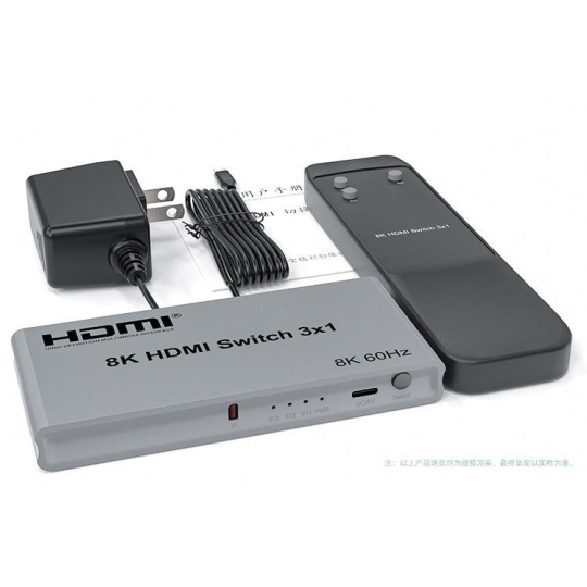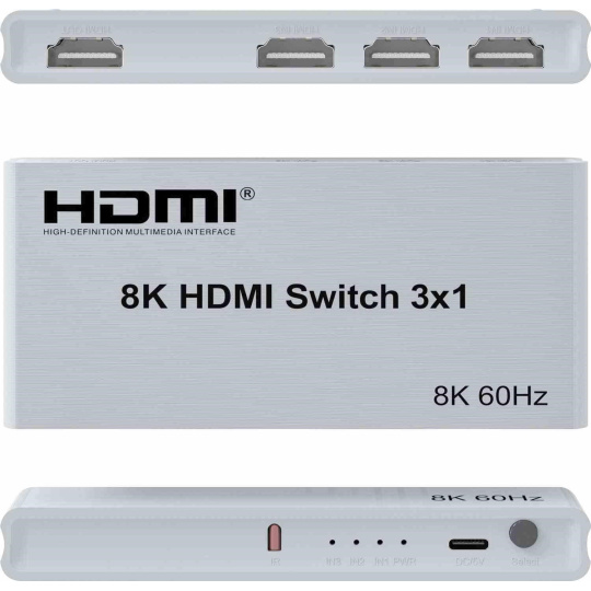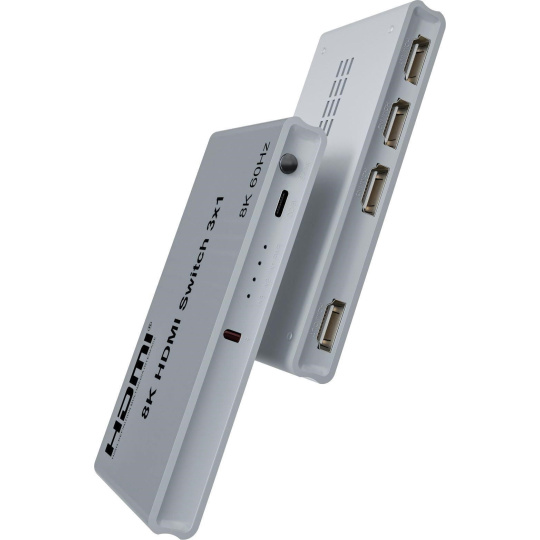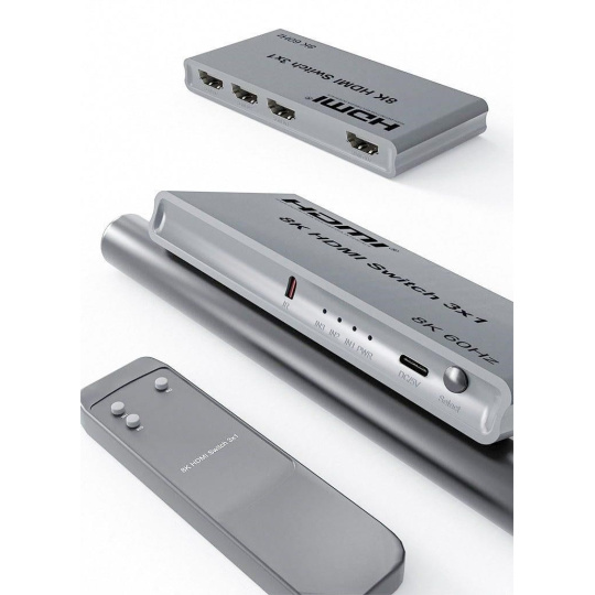PremiumCord 8K@60Hz, 4K@144Hz HDMI switch 3:1 s dálkovým ovladačem