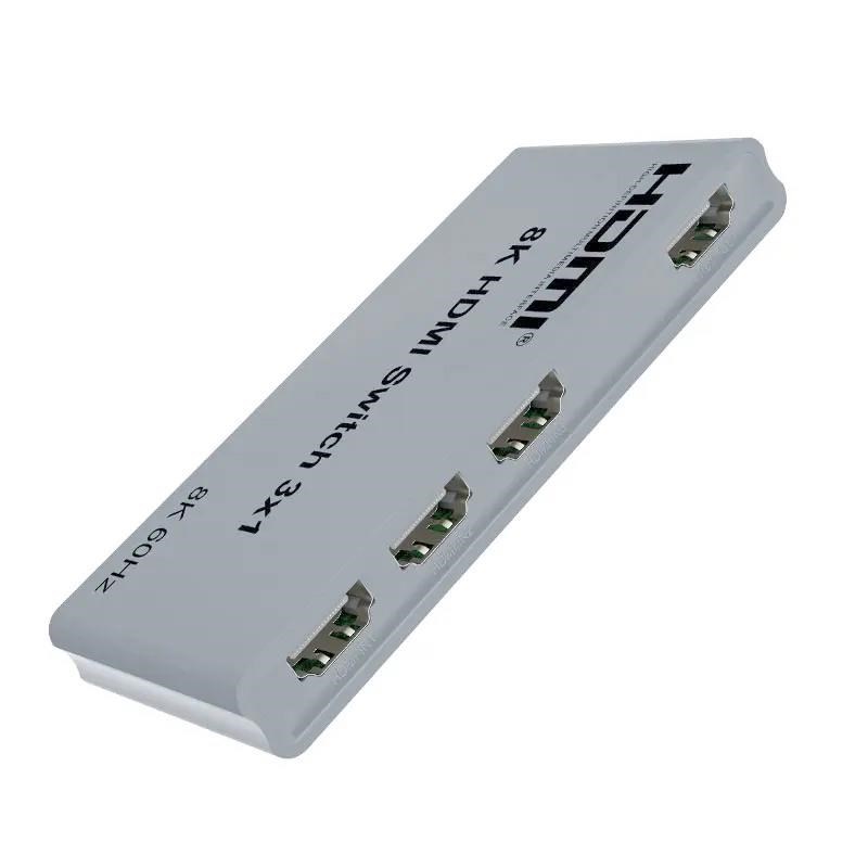 3 HDMI zařízení na vstupu sdílejí 1 výstupní monitor, projektor. Výběr vstupních zařízení: 1.automaticky, 2.stisknutím tlačítka na čele přepínače, 3.dálkovým ovladačem