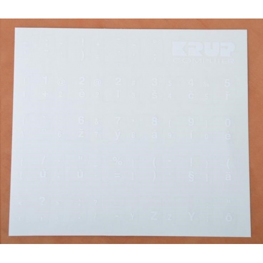 Přelepky na klávesnici CZ/SK  - bílá barva (obrázek je ilustrační) - česká abeceda - kompletní přetisky, vhodné i pro notebooky.