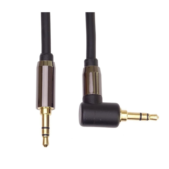 PremiumCord HQ stíněný kabel stereo Jack 3.5mm - Jack 3.5mm zahnutý 90° 3m