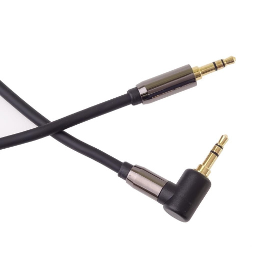 PremiumCord HQ stíněný kabel stereo Jack 3.5mm - Jack 3.5mm zahnutý 90° 5m