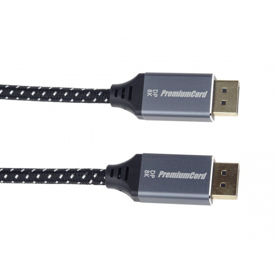 PremiumCord DisplayPort 1.4 přípojný kabel M/M pro rozlišení 8K, kovové krytky a zlacené konektory, 1m