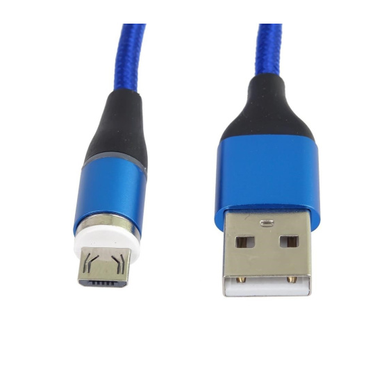 PremiumCord Magnetický micro USB a USB-C nabíjecí a datový kabel 1m, modrý