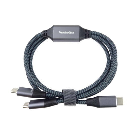 PREMIUMCORD Nabíjecí kabel USB-C, 2xUSB-C na USB-C, 100W, 1m, černá