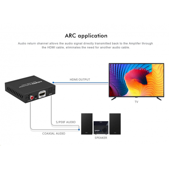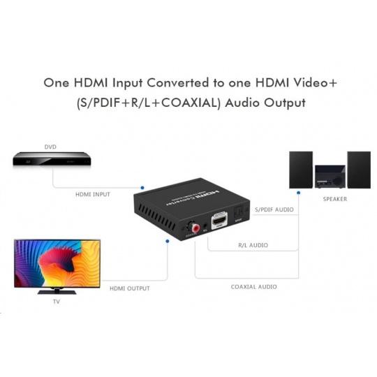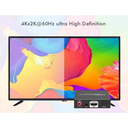 Umožní oddělit audio z HDMI2.0 vstupu na analogové / digitální audio, které je vyvedeno zvlášť na konektory: stereo jack, Digitální audio RCA CINCH nebo digitální optické TOSLINK (SPDIF)