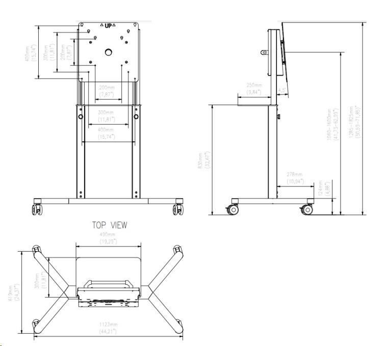 Podporované VESA standardy: • VESA 200x200 • VESA 300x300 • VESA 400x400 • Mobilní vozík s otočnou hlavou - pivot • Ideální pro kanceláře nebo vzdělávací prostory • Podporuje funkce a funkce 55palcového displeje Samsung Flip • Maximální nosnost 70 kg • Atraktivní vzhled a nastavení výšky displeje • Konstrukce vozíku umožňuje vedení kabelů přes hlavu, což činí vedení bezpečným a odolným proti oděru při otáčení displeje. • Bezpečné a trvanlivé.