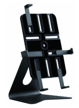 Stojánek pro tablety 7-11" v horizontální i vertikální poloze na stůl. Plynule nastavitelný sklon v rozmezí +90 až -15° a navíc otočný 360°, ideální pro rychlou změnu horizontální i vertikální polohy, fixace tabletu ze čtyřech stran, kovová konstrukce, černý..