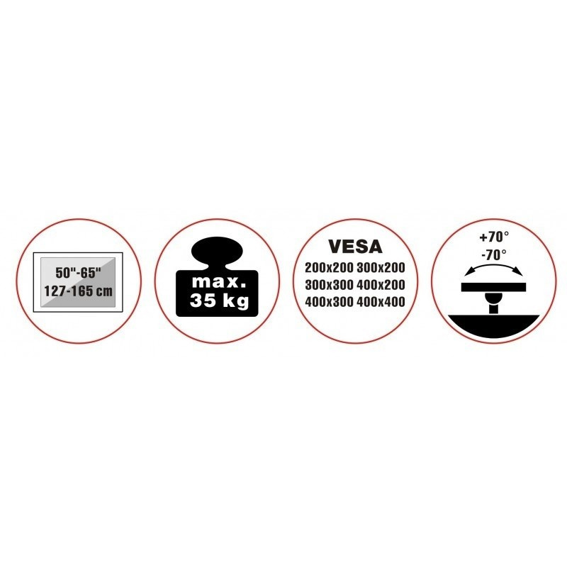 Unikátní televizní stolek na Plasma a LCD TV s uhlopříčkou 50"- 65" (127-165cm) a hmotností maximálně 35kg. Designová kombinace černé kovové konstrukce + 3x dřevěné nohy (ořech). Propracované tvary a vedení kabeláže pro maximální estetický zážitek. Uchycení VESA: 200x200, 300x200, 300x300, 400x200, 400x400..