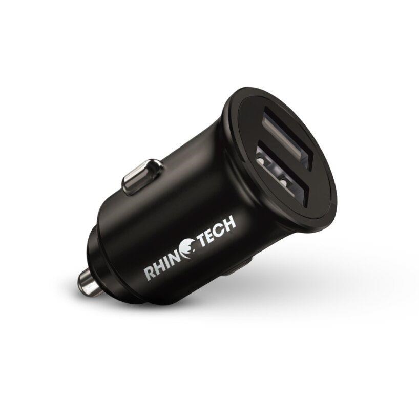 Nabíjecí duální adaptér RhinoTech pro nabíjení ve vozidle v kompaktních rozměrech a s celkovým výkonem 24W (12W + 12W).