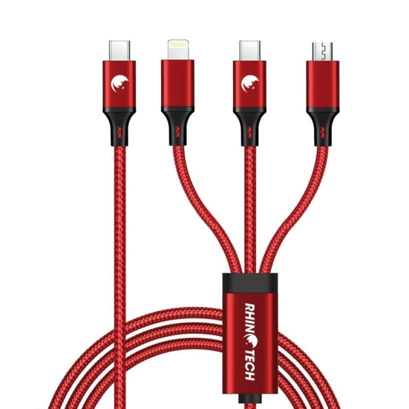 RTACC478 - RhinoTech nabíjecí a datový kabel 3v1 USB-C (MicroUSB + Lightning + USB-C) 40W 1,2m červená