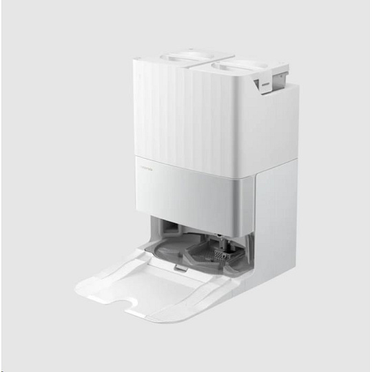 7 týdnů - bez potřeby manuálního vysypávání, 45°C - Sušení teplým vzduchem: Dokovací stanice je vybavena 2,7litrovým sáčkem na prach s certifikací E12. Po dokončení úklidu dojde v dokovací stanici k automatickému vysypání nádoby na prach robotického vysavače, takže jej nemusíte manuálně vysypávat po dobu až 7 týdnů. Sušení teplým vzduchem udržuje mopy i dokovací stanici v čistotě, zabraňuje vzniku zápachu a bakterií.