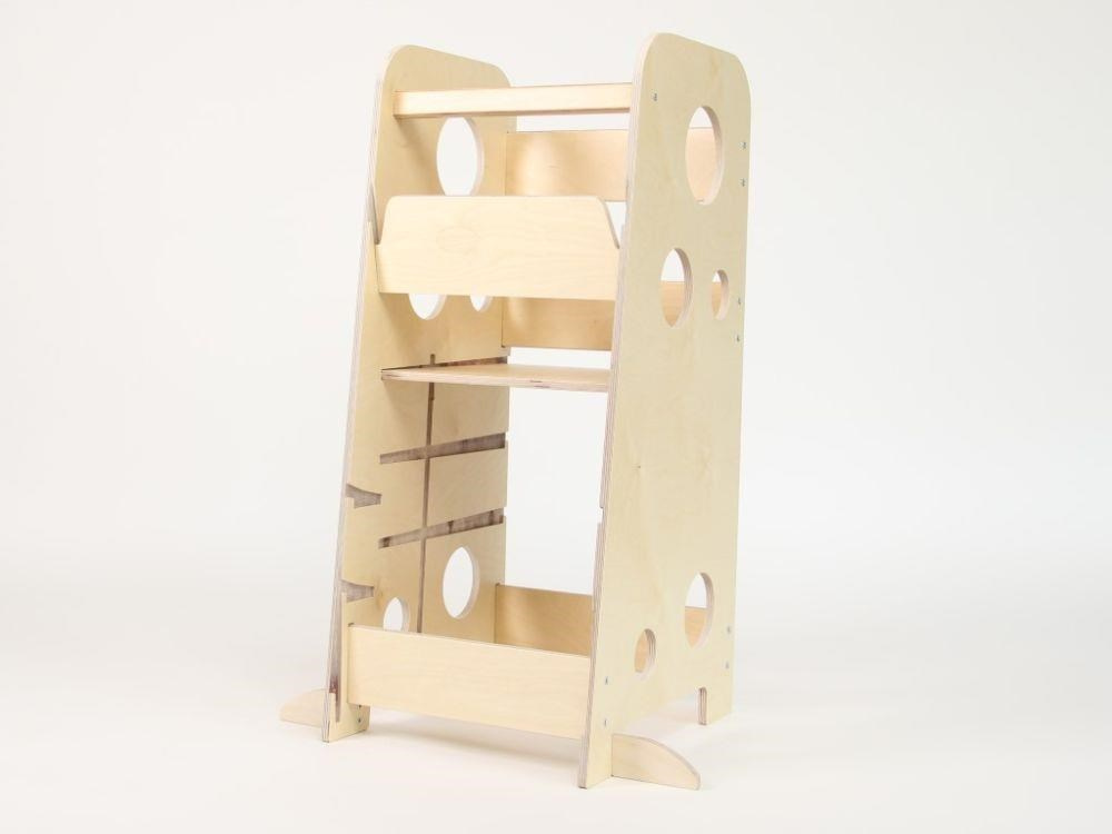 Rostoucí učící věž 3v1 Bublina Max 90 cm se stabilizačními prvky, přírodní (natur)