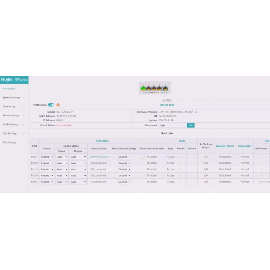 Registrace dealerské ceny: https://docs.google.com/forms/d/1sWwsswsbBk36eZx4CJrfl47qUvrORQyYz7kMjrt2f_c/prefill Popis produktu Inteligentní cloudově i přes webové rozhraní spravovatelný smart desktop PoE switch RG-ES205GC-P od značky Ruijie, nabízí cenově efektivní řešení s 5 Gigabit LAN porty z čehož 4 porty podporují 802.3af/at PoE s celkovým PoE budgetem 54 W. Tento kompaktní přepínač je ideální pro síťové aplikace, které vyžadují výkon a spolehlivost. Co se výčtu funkcí týče, switch nabízí tichý chod bez ventilátorů, podporu až 16 VLAN, DHCP snooping, testování kabelu, ochranou proti zakruhování a v rámci PoE možnost použití až na vzdálenost 250 m při snížení linkové rychlosti na 10 Mbps. Klíčové vlastnosti • 5× 10/100/1000 Mbps LAN porty • 4× 802.3af/at PoE - max. 30 W/port, PoE budget 54 W • Kvalitní provedení, kovové šasi • Bez venilátoru • Nízká spotřeba - max. 6 W • Správa přes webové rozhraní a cloud • Celoživotní správa na Ruijie Cloud kdykoli a kdekoli • Rozpoznávání IP kamer - jedinečná hodnota pro CCTV síť • Automatická prevence proti zakruhování • Podpora Long Range PoE na vzdálenost 250 m Obsah balení • Zařízení • Napájecí adaptér 5 4V/1.1 A Technické parametry Konektory a rozhraní Rychlost LAN:(5) 10/100/1000Mbps Napájení Typ napájení:DC konektor Typy PoE:PoE-Out (pouze) Podporované PoE-Out standardy:802.3af, 802.3at Počet PoE Out portů:4 PoE budget [W]:54 PoE na vzdálenost až 250m:Ano Max. spotřeba energie [W]:6 Napájení přes konektor/svorkovnici:54V / 1,1A Fyzické charakteristiky Provedení:Desktop Ventilátory:Bez ventilátoru Šasi:Kovové Tlačítka:Reset Provozní teplota [°C]:0 až 40 Šířka [mm]:148 Výška [mm]:26 Hloubka [mm]:78 Obecné Rychlost přepínání [Gbps]:10 Tabulka MAC adres:2000 Rychlost předávání paketů [Mpps]:7,4 Software Web management:Ano Management:Webové rozhraní, Ruijie cloud Funkce:VLAN, DHCP snooping Výchozí IP adresa:10.44.77.200 Výchozí jméno a heslo:Nastavuje se při prvním spuštění.