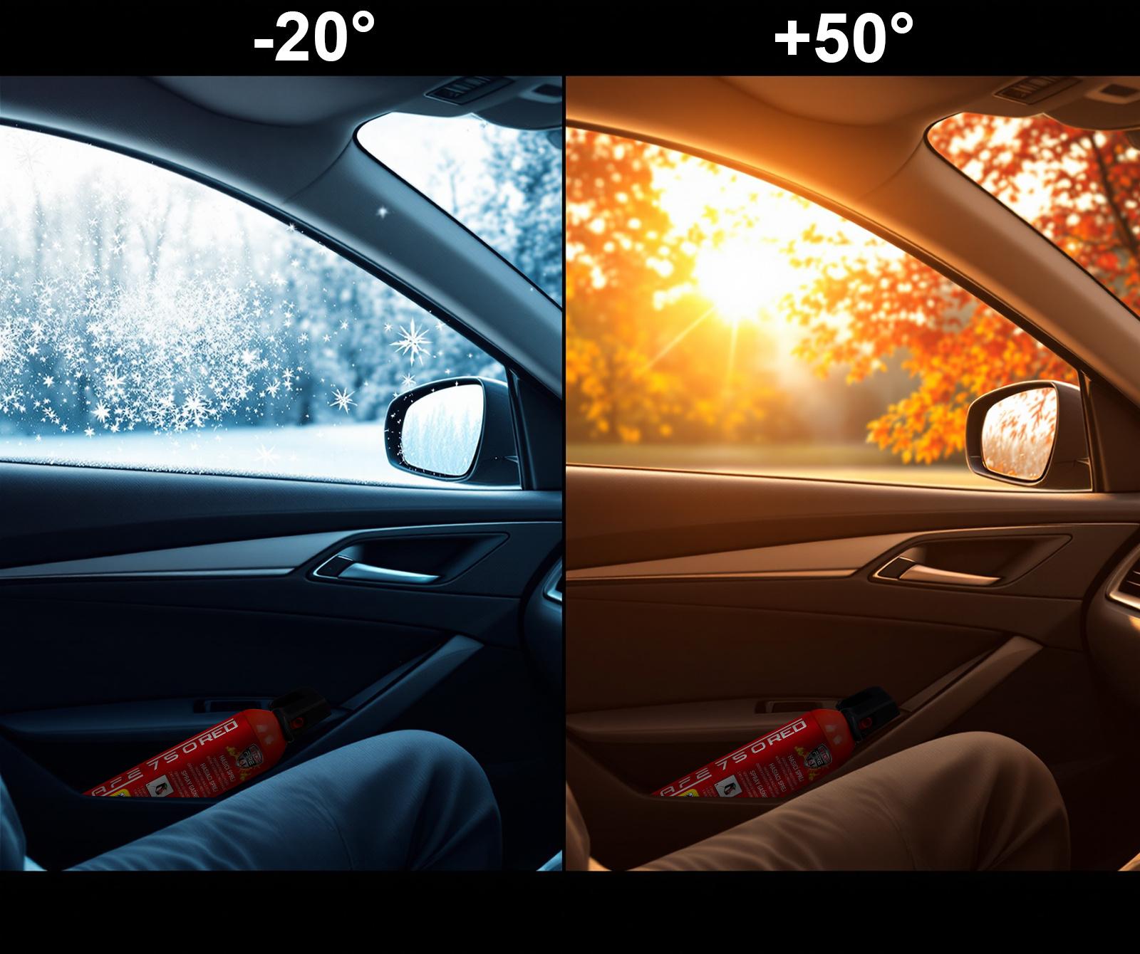 SAFE 750 RED přináší 750 ml vysoce účinného hasiva s dobou hašení až 25 sekund. Jeho hlavní výhodou je mimořádná odolnost vůči teplotním extrémům – bezpečně jej můžete skladovat i používat v rozmezí od -20 °C do +50 °C. Díky této vlastnosti patří mezi jedinečné mrazuvzdorné hasicí spreje ve své třídě, které si zachovávají plnou funkčnost i při výrazných změnách teplot.