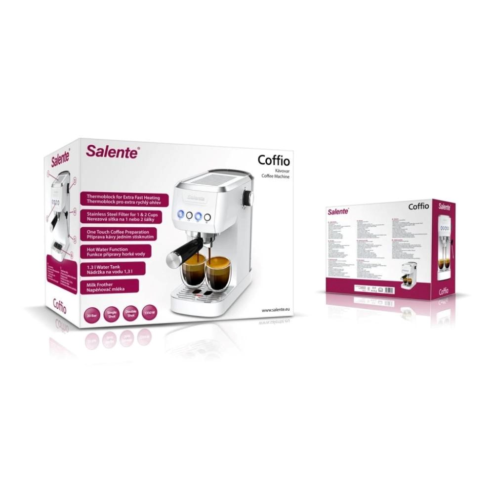 Salente CoffioCelonerezové provedeníTlak 20 barůProgramování objemu kávy2 sítka na 1 a 2 šálkyNapěňovač mlékaPředehřev šálkůFunkce předspařeníPřeneste se s každým šálkem kávy do slunné ItálieZnačka Salente, inspirovaná půvabným italským regionem, přináší do vaší kuchyně špičkový pákový kávovar, který u vás doma vytvoří... více