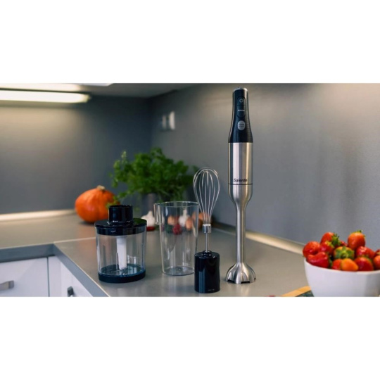 - Speciální kombinace ergonomie a vroubkovaného povrchu úchopové části mixéru zajišťuje pevný úchop v každé situaci