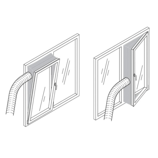 • Odvodu teplého vzduchu z místnosti přes dodávanou flexibilní hadici a těsnění do okna