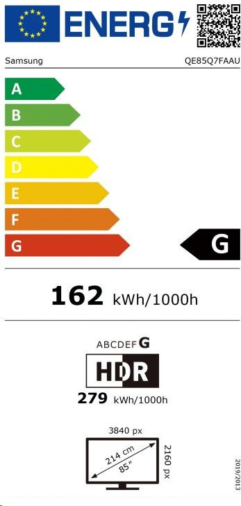 Samsung 85" TV, 4K Ultra HD, QLED, HDR, Tizen OS, Apple AirPlay, WiFi, Bluetooth