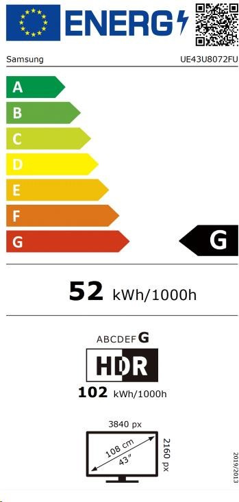Samsung U8072F 43" TV, 4K Ultra HD, HDR, Tizen, Apple AirPlay, OTS Lite