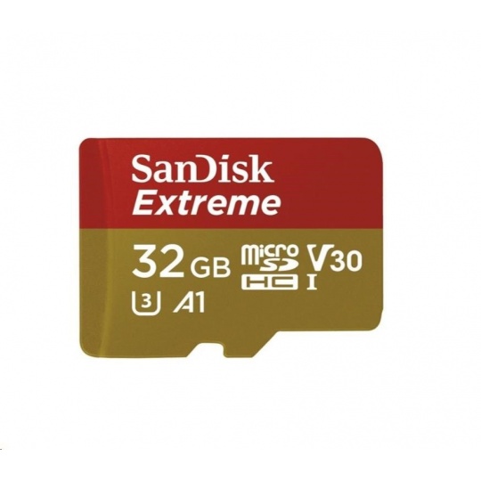 SanDisk MicroSDHC karta 32GB Extreme (100MB/s, Class 10 UHS-I V30, pro akční kamery) + adaptér