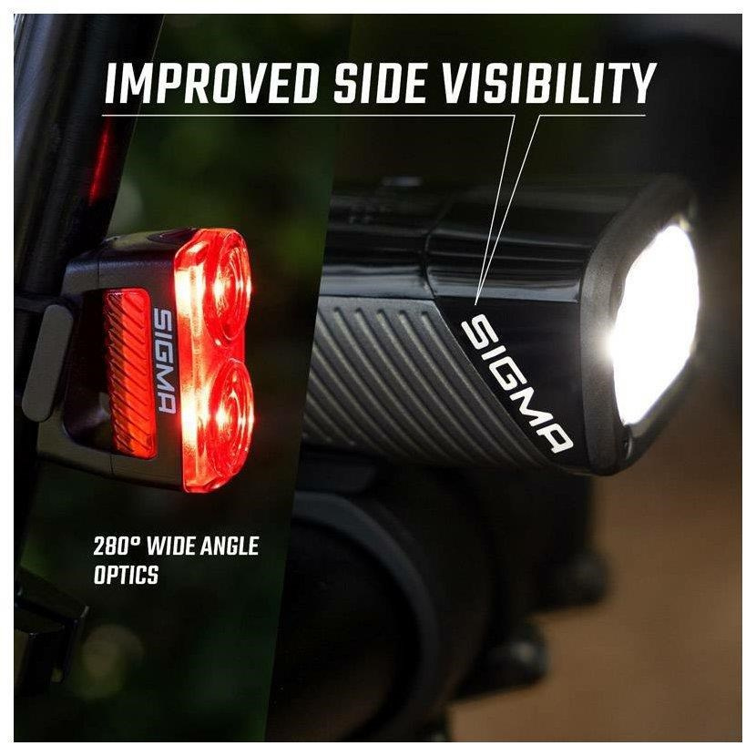 Světelný kužel světla Buster 1600 je opravdovým unikátem. Perfektně nasvítí silnici i stezku tak, aby cyklista o hodně lépe viděl do zatáček a na terén. Umožňuje to nově vyvinutá dvojitá čočka se dvěmi různými optikami a dvěmi prémiovými LED od společnosti Osram. Výsledkem je spousta světla a obzvláště široký a homogenní světlený kužel. Logo SIGMA na podélných stranách světla zajišťuje podstatně lepší viditelnost ze strany a tím i vyšší bezpečnost v silničním provozu