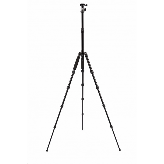 Počet vodováh: 1 Středový sloupek: Ano Způsob uchycení hlavy: 3/8", 1/4" Typ zámku nohou: Twist Lock Sekce nohou: 5 Rychloupínání (quick release): Ano Patky stativu: Guma Průměr nohy (mm): 22 mm Typ hlavy: Kulová hlava Maximální výška nohou (mm): 1230 mm Materiál: Hliník Maximální zatížení (kg): 5 kg Minimální výška (mm): 80 mm Složená délka: 315 mm Maximální výška (mm): 1380 mm Barva: Černá Použití: Kompakt s výměnným objektivem, DSLR, CSC Hmotnost (g): 1050 g.