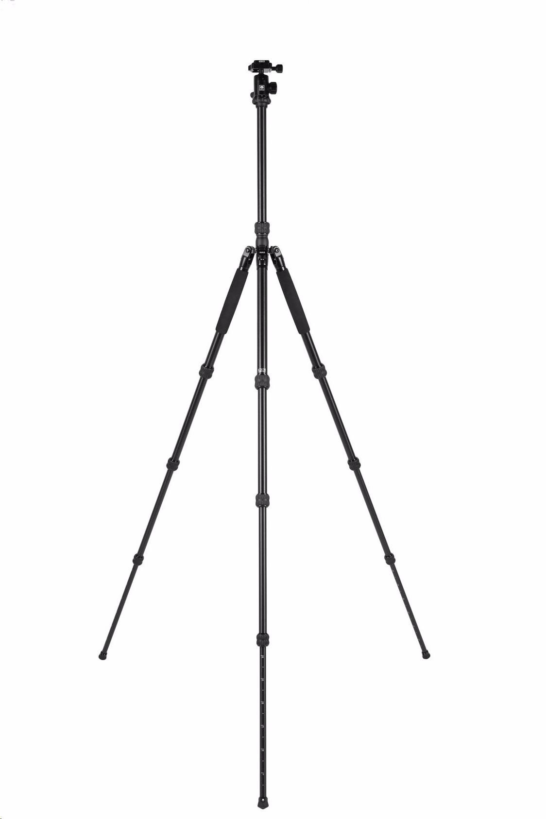 Počet vodováh: 2 Středový sloupek: Ano Způsob uchycení hlavy: 3/8", 1/4" Typ zámku nohou: Twist Lock Sekce nohou: 4 Rychloupínání (quick release): Ano Patky stativu: S hroty, Guma Průměr nohy (mm): 25 mm Typ hlavy: Kulová hlava Maximální výška nohou (mm): 1400 mm Materiál: Hliník Maximální zatížení (kg): 12 kg Minimální výška (mm): 500 mm Složená délka: 465 mm Maximální výška (mm): 1680 mm Barva: Černá Použití: Kompakt s výměnným objektivem, DSLR, CSC Hmotnost (g): 1890 g.
