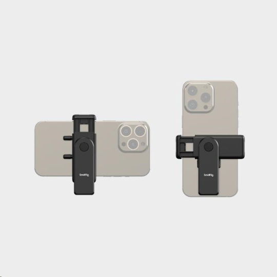 360stupňová rotace držáku umožňuje bezpečné a rychlé přepínání mezi orientací na výšku a na šířku, zatímco duální úchyty cold shoe umožňují připevnění kompatibilního příslušenství.
