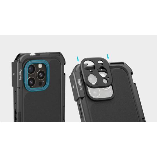 Pouzdro vybavené rychloupínací zadní deskou T-mount slouží jako každodenní ochrana telefonu. Backplate T-mount lze přepínat pomocí ořezávacího kroužku, backplate objektivu se 17mm závitem nebo adaptéru s 67mm magnetickým filtrem pro lepší optický výstup.